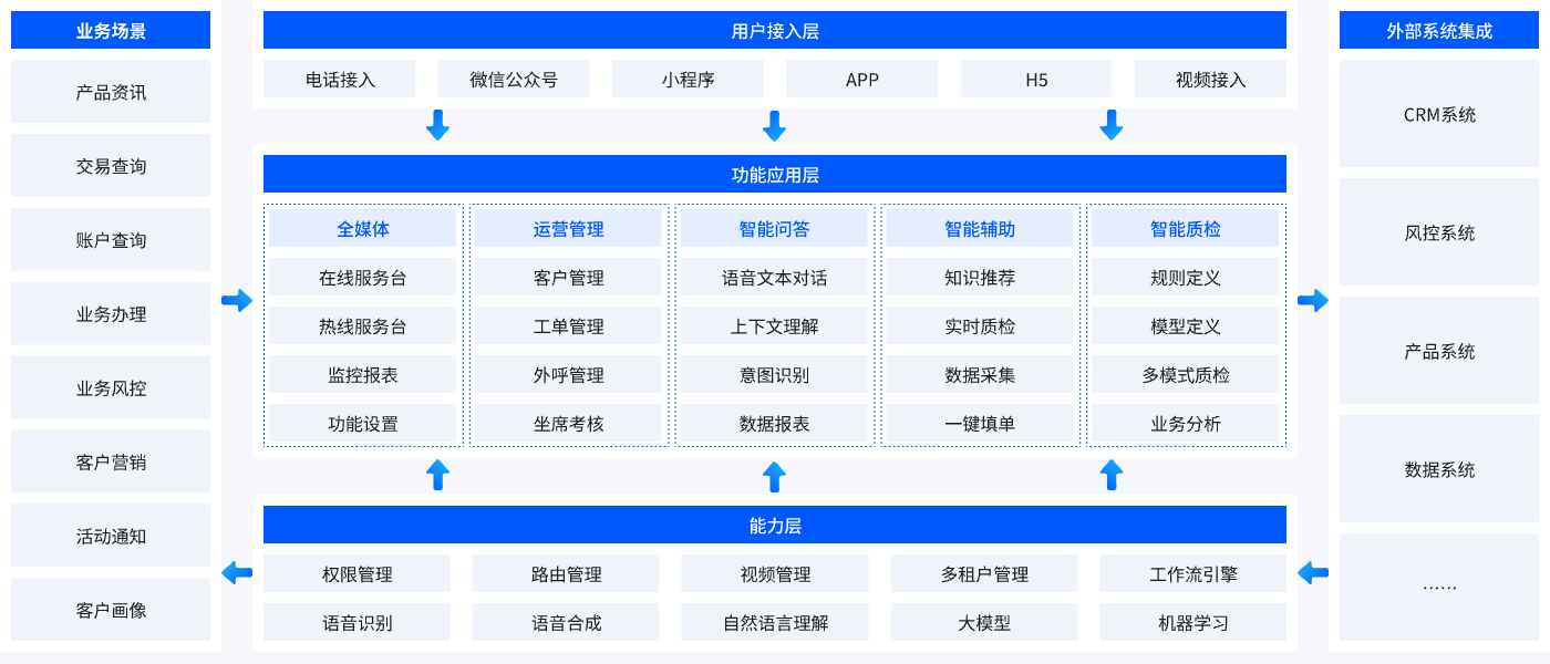 依托AI技術構建智能服務平臺,融合全媒體通信,實現高效運營、精準風控與優(yōu)質客戶服務。