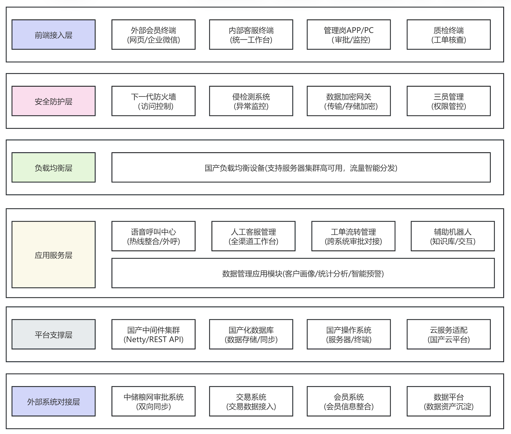 以信創(chuàng)自主可控底座為核心,整合 “全渠道接入 + 智能處理 + 數據驅動” 三大能力,無縫對接糧油企業(yè)交易、會員等現有系統(tǒng),構建覆蓋客服全業(yè)務場景的一體化管理體系