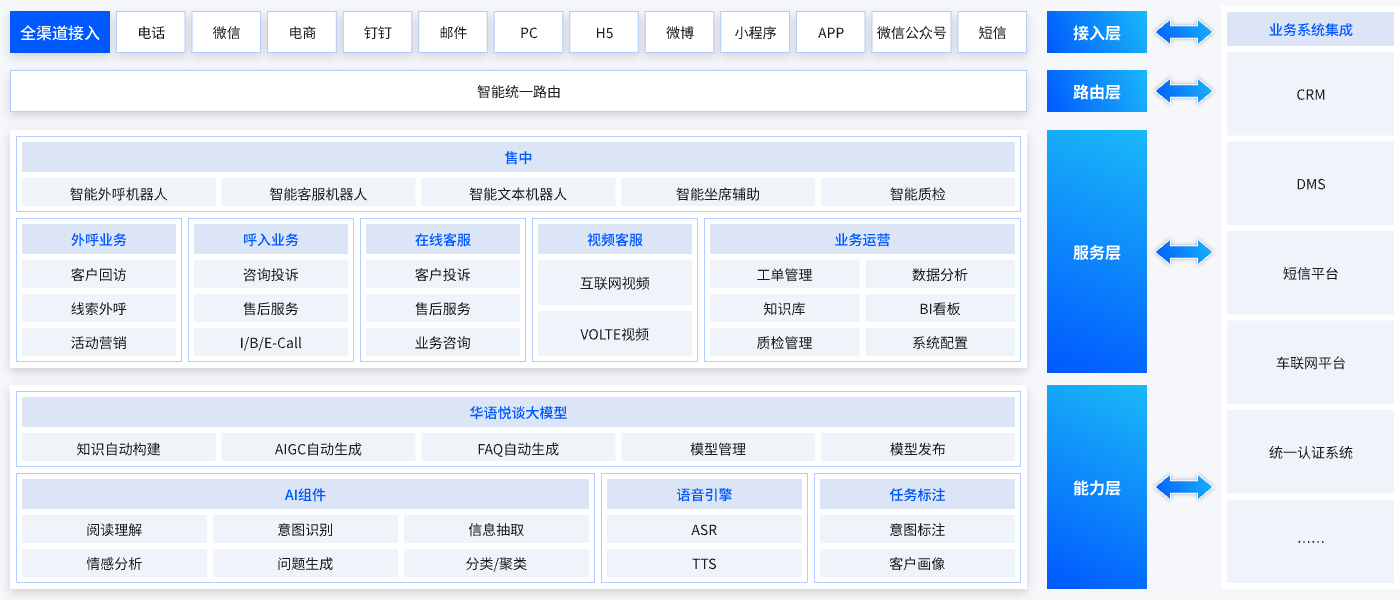 為提升客戶服務(wù)體驗,應(yīng)用在售前咨詢、售中服務(wù)、售后服務(wù)和主動服務(wù)等場景,并通過智能語音客服、智能在線客服、工單、智能外呼、智能質(zhì)檢等產(chǎn)品組合,進(jìn)行有效落地。