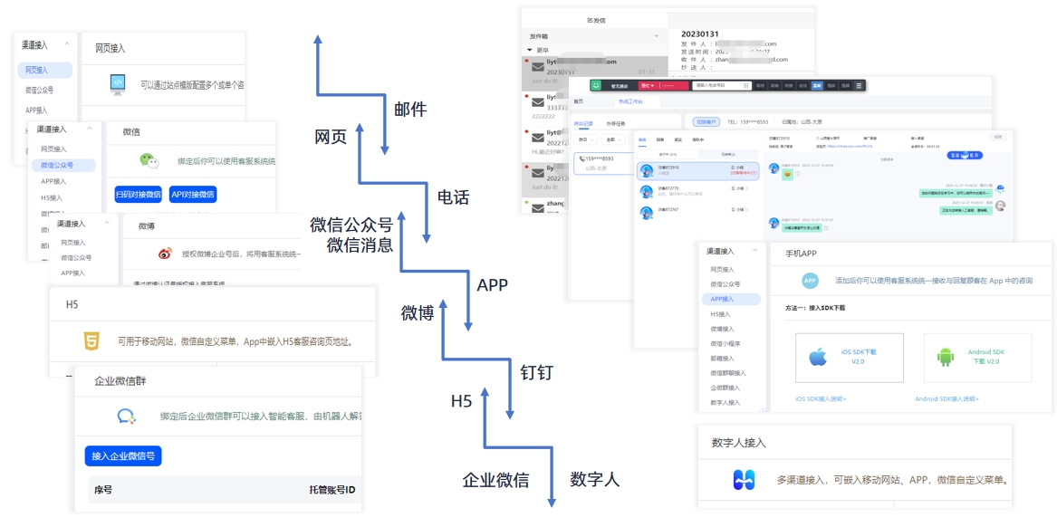 華云天下的在線客服系統(tǒng)全面覆蓋了多種進(jìn)線渠道,如網(wǎng)站、公眾號、小程序、APP、企業(yè)微信、飛書、釘釘?shù)?,極大提升了服務(wù)效率與客戶滿意度。同時支持快速集成,無縫對接企業(yè)現(xiàn)有業(yè)務(wù)系統(tǒng),實(shí)現(xiàn)數(shù)據(jù)的交互查詢,為企業(yè)打造一站式、高效能的客戶服務(wù)解決方案。
