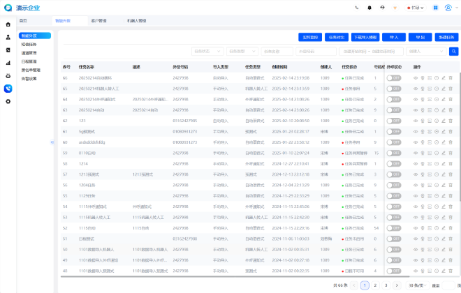 自動化任務(wù)管理:系統(tǒng)支持批量導(dǎo)入電話號碼,自動進(jìn)行批量外呼,并根據(jù)預(yù)設(shè)規(guī)則自動篩選意向客戶。